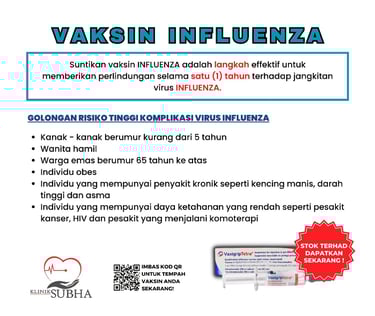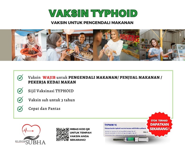 As a food handler, your health is crucial for public safety. This Thyphoid vaccine is mandatory requirement by Ministry of Health Malaysia.