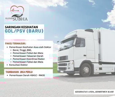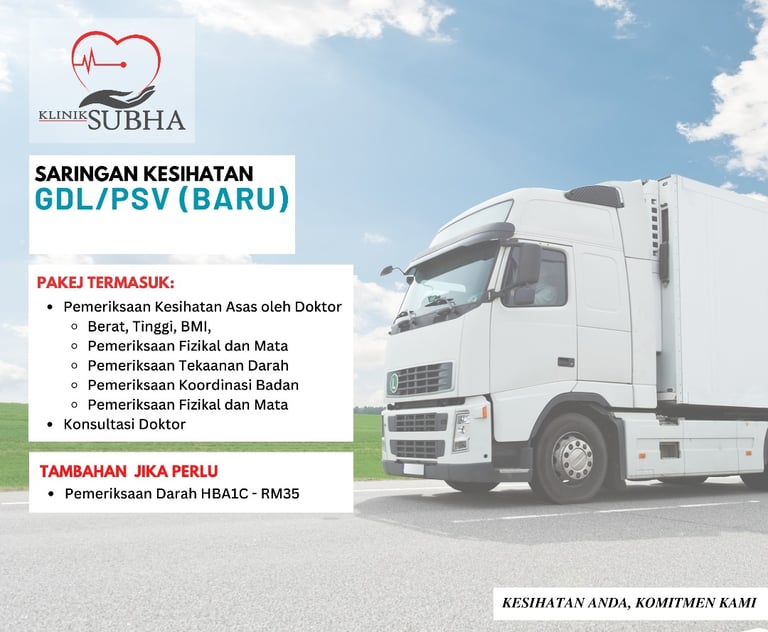 Time to renew your GDL or PSV License? Our health screening package is tailored for a fast and hassle-free renewal process.