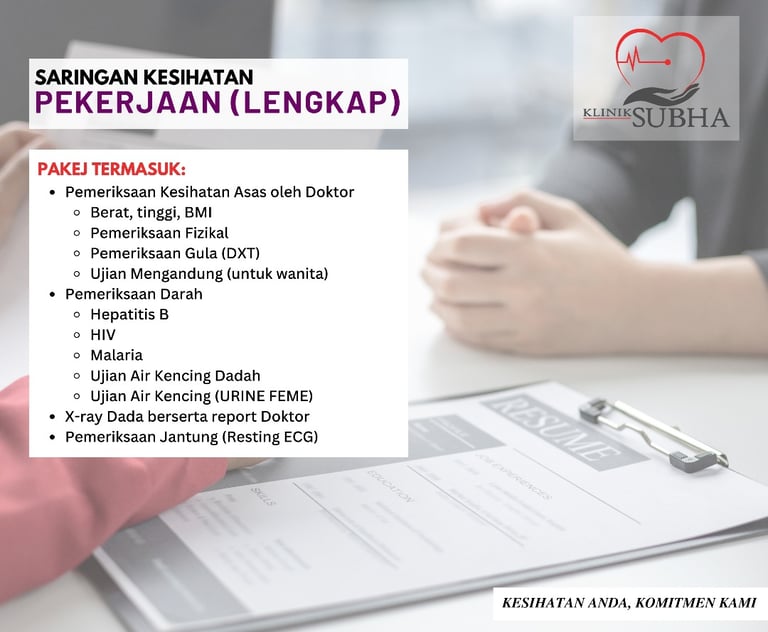 Starting a new job? Our Pre-Employment screening covers essential health checks.